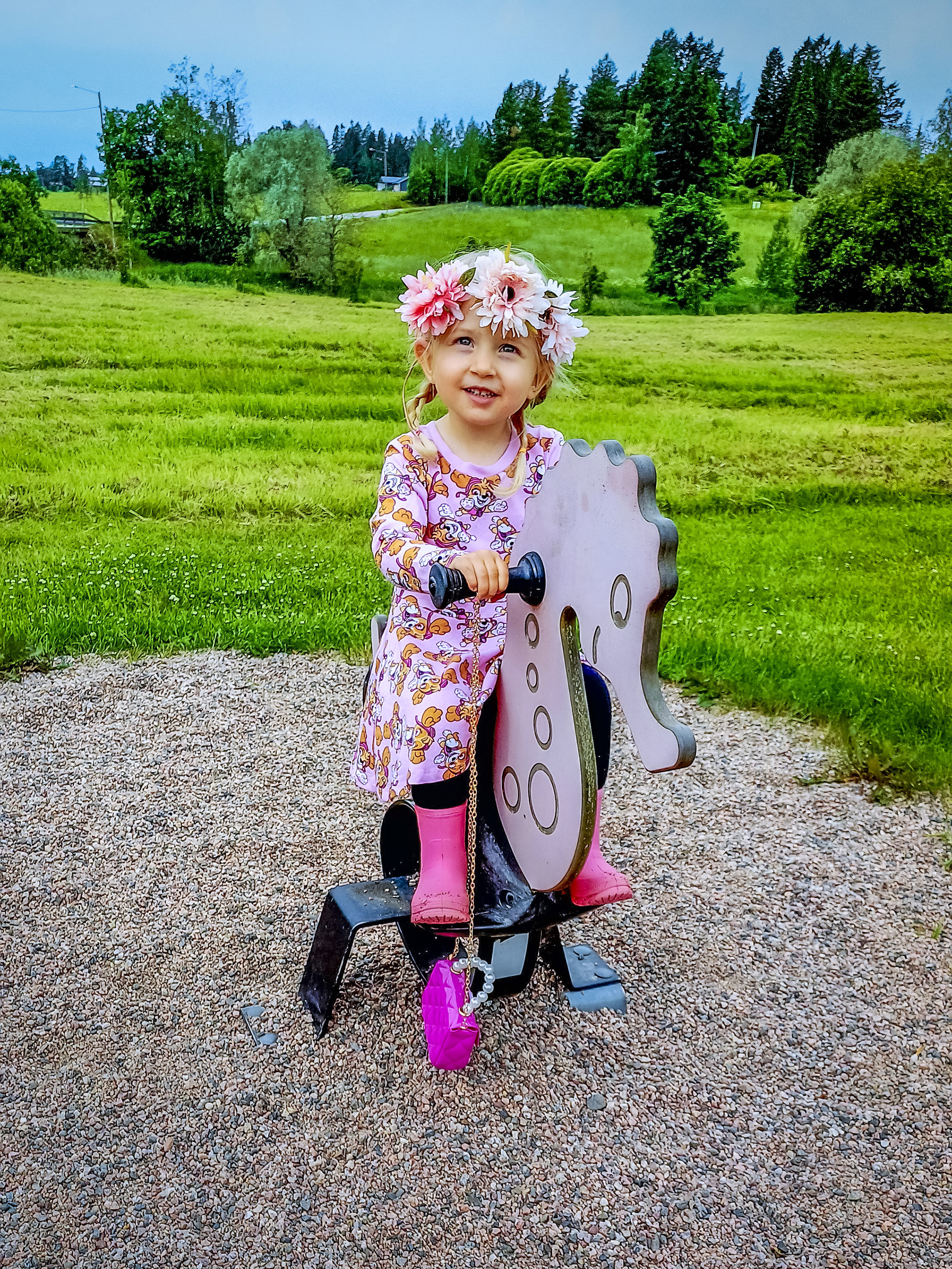 Kuva on otettu juhannuksena Askolan kirkonkylän leikkipuistossa. Kuvassa on Ollilan puolison 2-vuotias lapsenlapsi Karoliina.